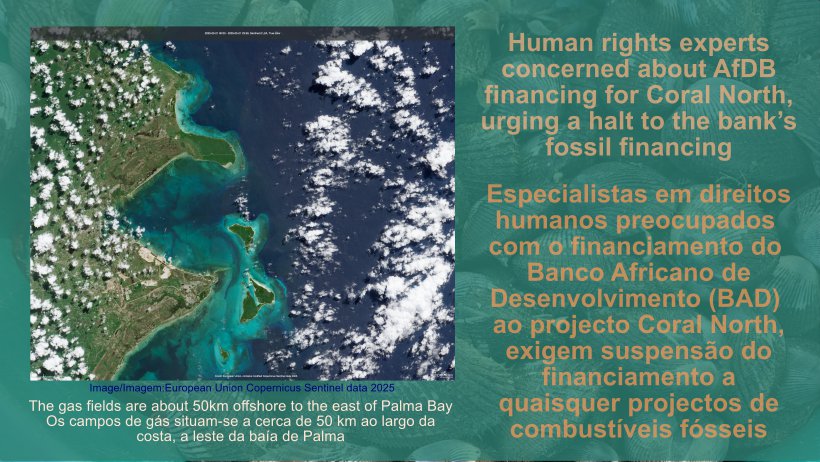 01 April 2026 – Campaign members of the “Say No to Gas! In Mozambique” coalition share the serious concerns expressed by UN-appointed human rights experts regarding the African Development Bank’s (AfDB) $150 million loan to support the Coral North Floating Liquefied Natural Gas (FLNG) project [1]. They demand that all financial institutions respond to the call of these experts, by committing to not support the gas expansion in northern Mozambique and suspend financing for new fossil fuel projects.