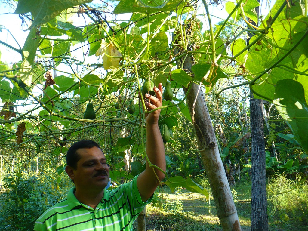 the toilets are composting pit toilets, which separate liquids and solids, and present a very ecological way of dealing with sewage. The housing structures are all built from local, sustainable materials. The farm at the Ecocentro produced all the lovely fruits and vegetables that almost 100 people ate for three meals every day for 5 days. See the photo of some of the fresh organic produce at the Ecocentro farm.