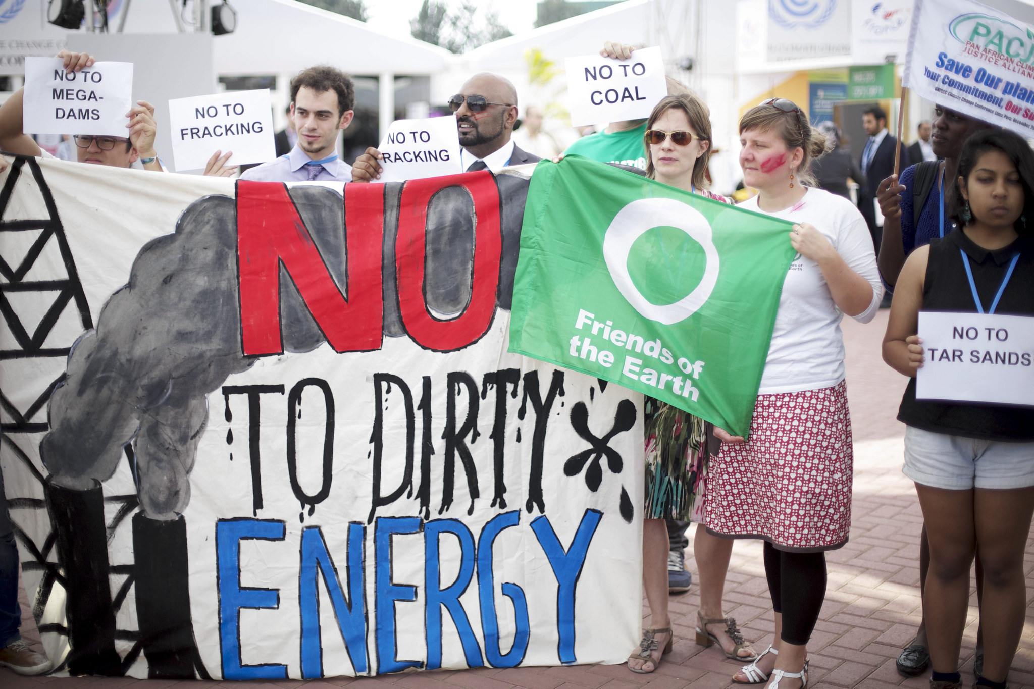 Protest inside COP 20 demanding an end to dirty energy. Photo credit: Luka Tomac