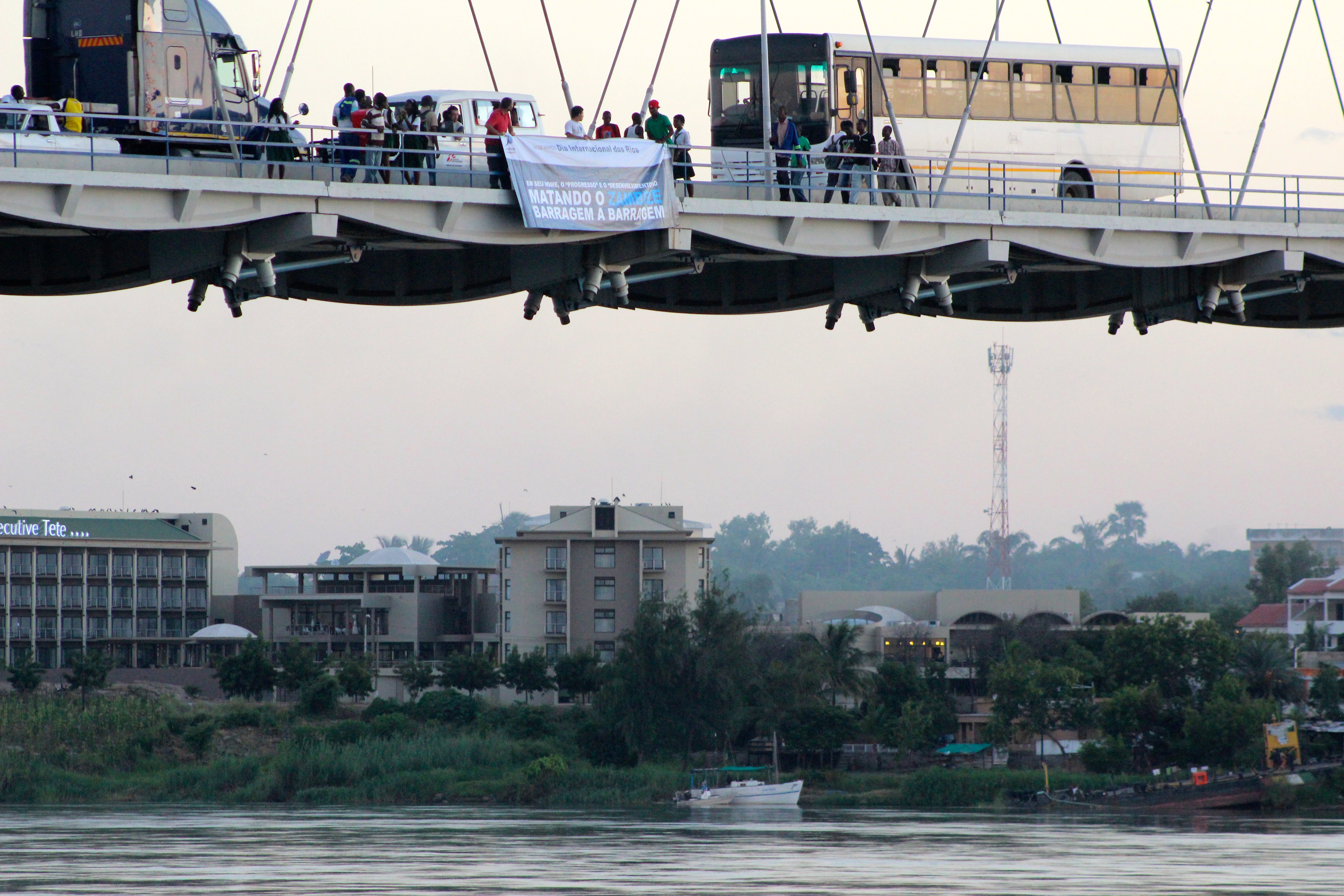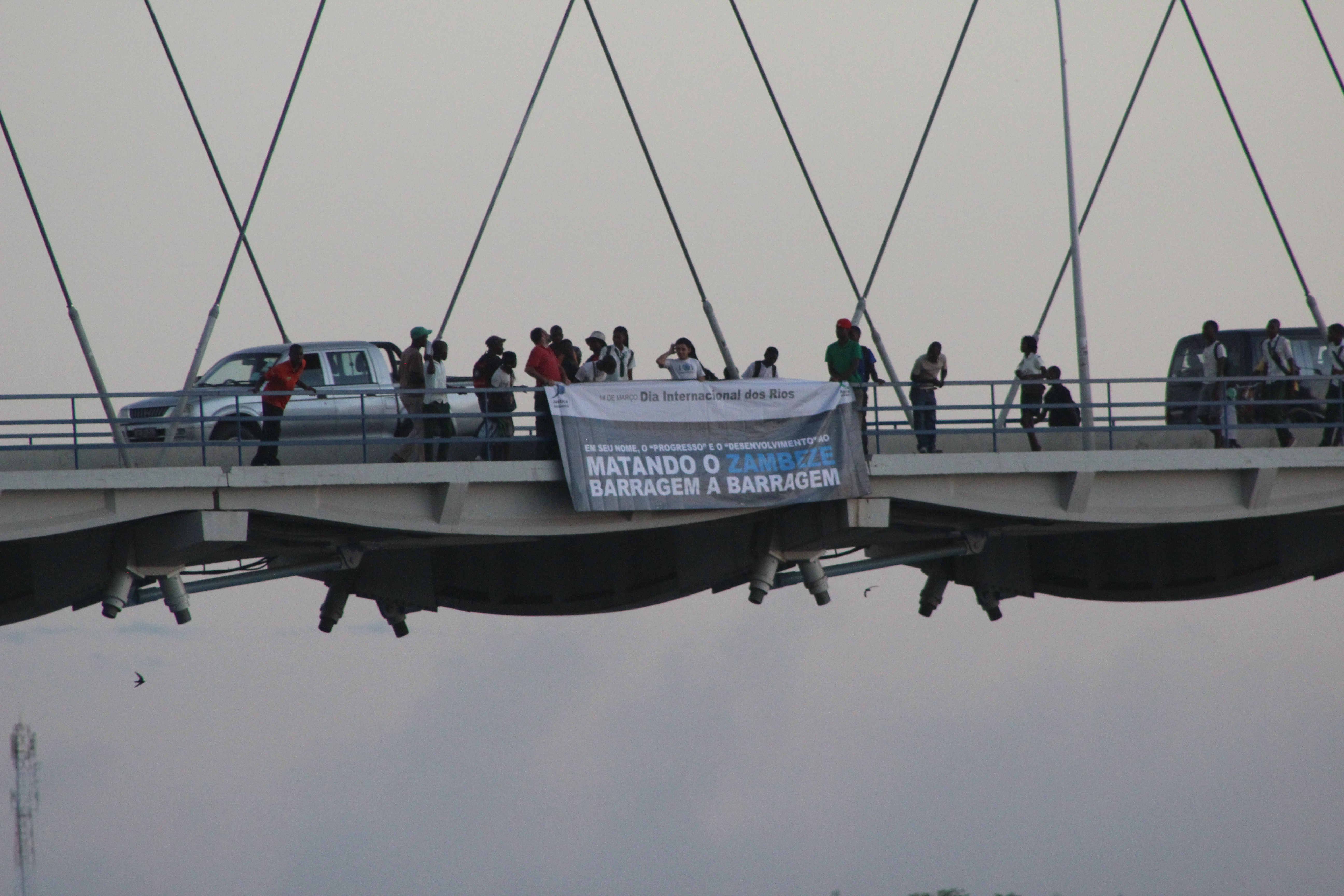 In Tete, we put up a banner on the Samora Machel Bridge in Tete which is the town closest to the proposed dam and also close to the coal mining-affected communities. The message on the banner was strong, and was directed at every single person who saw it: IN YOUR NAME, “PROGRESS” AND “DEVELOPMENT” ARE KILLING THE ZAMBEZI DAM BY DAM) We distributed leaflets about the consequences of the proposed Mphanda Nkuwa dam.