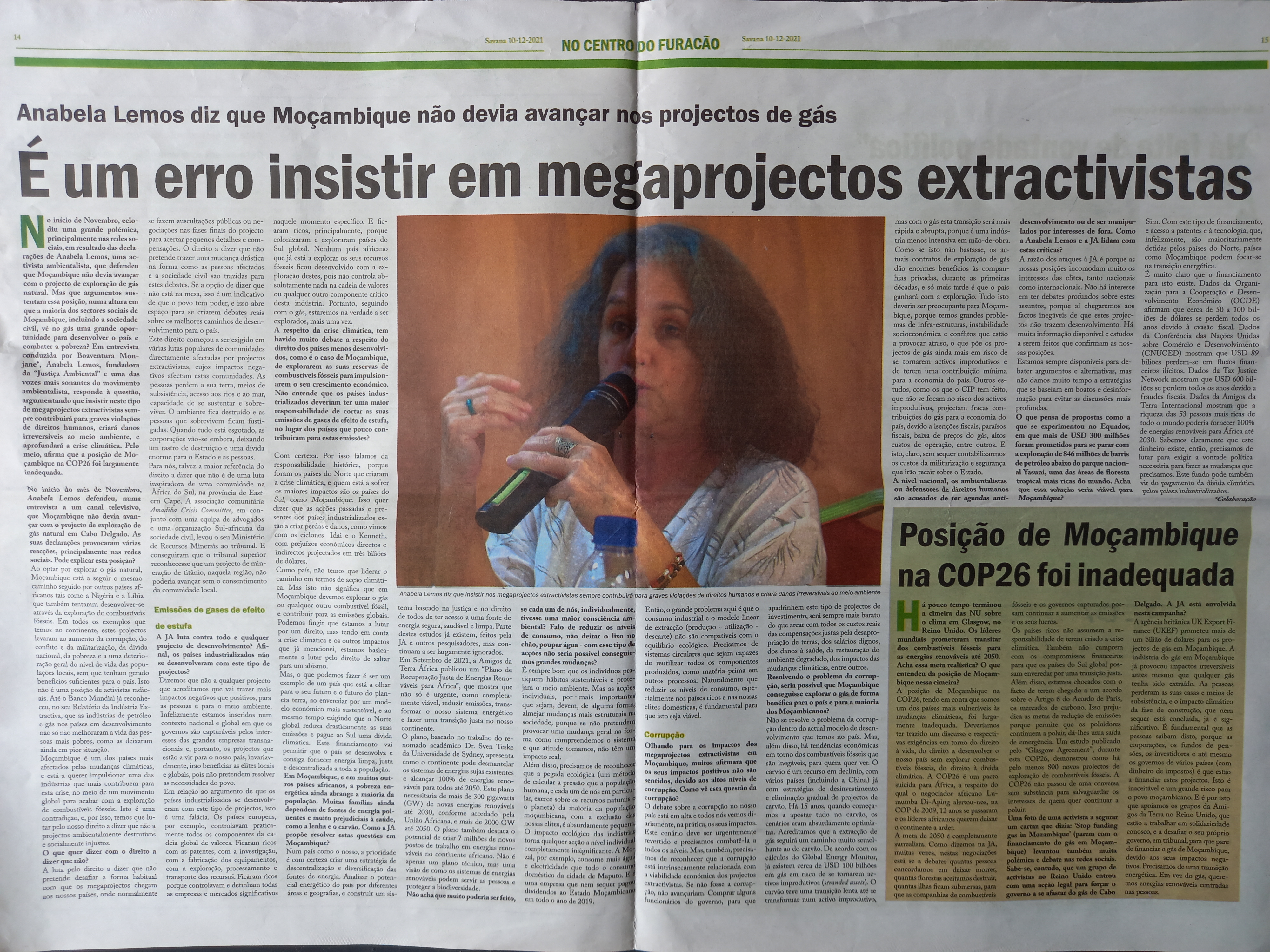 In an interview conducted by Boaventura Monjane*, Anabela Lemos, founder of “Justiça Ambiental” and one of the loudest voices in the environmental movement, responds to the question, arguing that insisting on this type of extractivist mega-projects will always contribute to serious violations of human rights, will cause irreversible damage to the environment, and will deepen the climate crisis. She also claims that Mozambique’s position at COP26 was largely inadequate.
