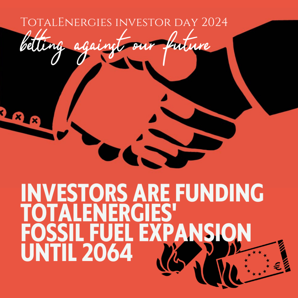 [New York/Frankfurt/Paris, 2nd October 2024] – On Wednesday 2nd October, climate activists are protesting in New York, where TotalEnergies is hosting its main investors. Actions are also taking place this week at the headquarters of TotalEnergies’ investors and banks in Frankfurt and Paris. Activists are calling on investors and banks to make an immediate commitment to stop issuing or buying new bonds from TotalEnergies, as well as to stop all support for companies developing new oil and gas projects.